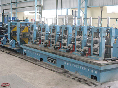 Steel strip → Coil car → Uncoiling →Coil peeler → Pinch & Leveling →Shearing and butt welding → Accumulator → Forming → Welding → Bead remover →Water cooling →Sizing → Turks head → Flying saw cutting →End facing & chamfering → Pipe collecting.