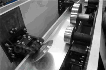 Feeding: for guiding the punched plate in forming machine smooth, composed by horizontal roller, guiding vertical roller and frame. Guide vertical roller can be adjusted by hand wheel easily, adapt to the different width.