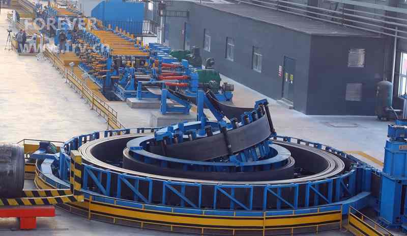 Strip coil→ Uncoiling →Coil peeler → Pinch & Leveling →Shearing and butt welding → Accumulator → Forming → Welding → Bead remover →Water cooling →Sizing → Turks head → Flying saw cutting → Tube collecting.